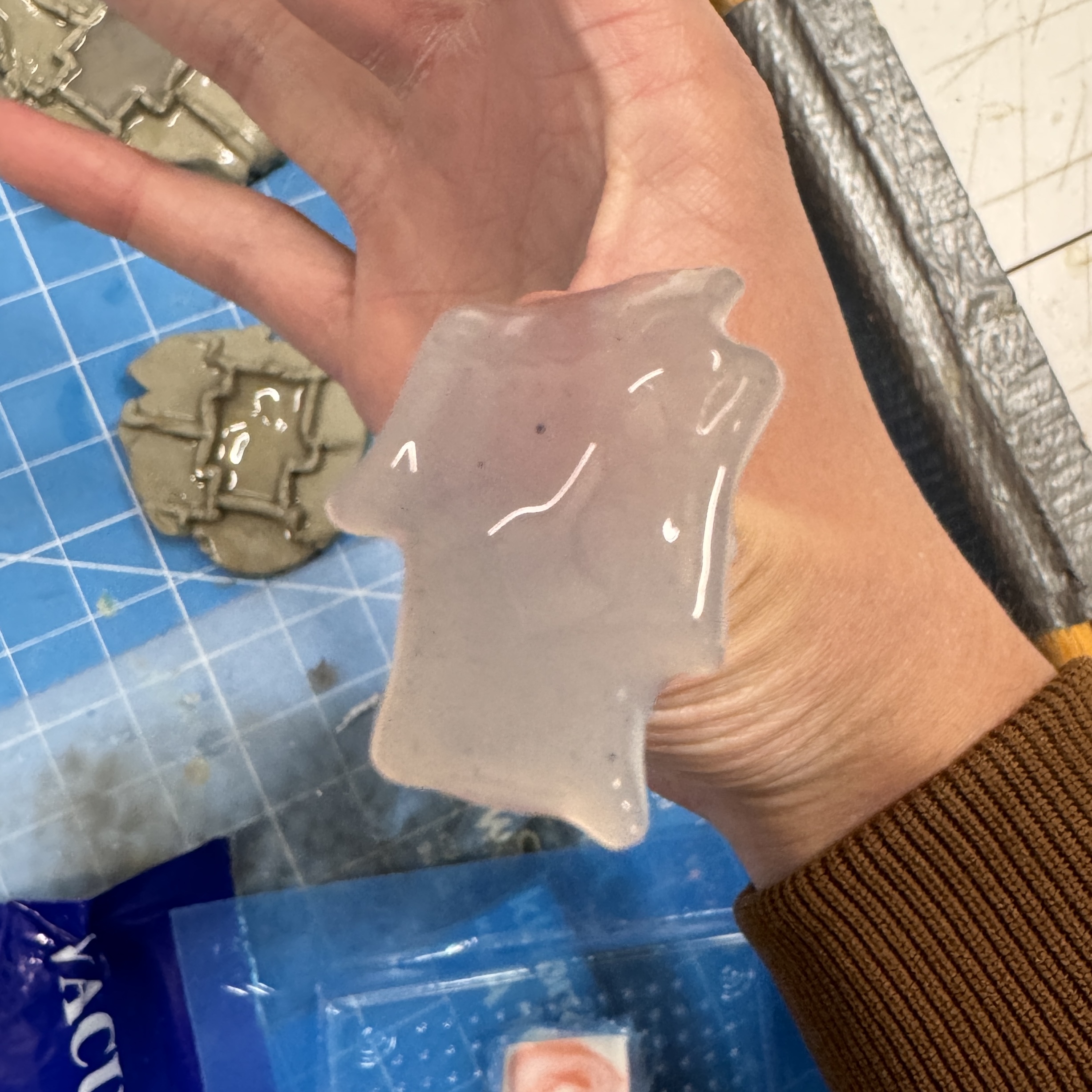 I came back after 24 hours to see if the 4 hour silicone had dried, but it unfortunately had not. I used silicone that someone else mixed, but their cast came out fine. The only thing that I can think of is that I waited a few minutes after they mixed the silicone to pour it into my mold, so maybe that was the reason, but that seems unlikely to me. The BB8s were definitely more cured than the county casts were (although I lost a BB8 by trying to take it out of the mold too soon), so maybe the clay is detrimental to the curing process. I will check back tomorrow to see if it's any better.