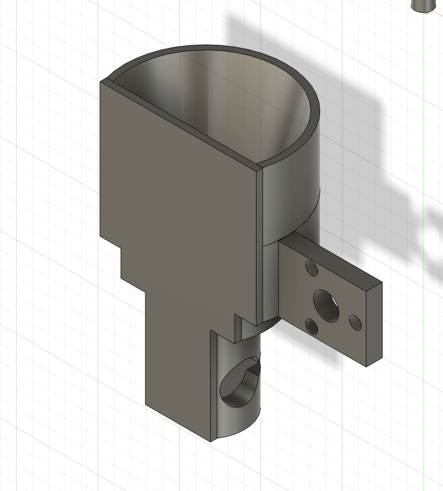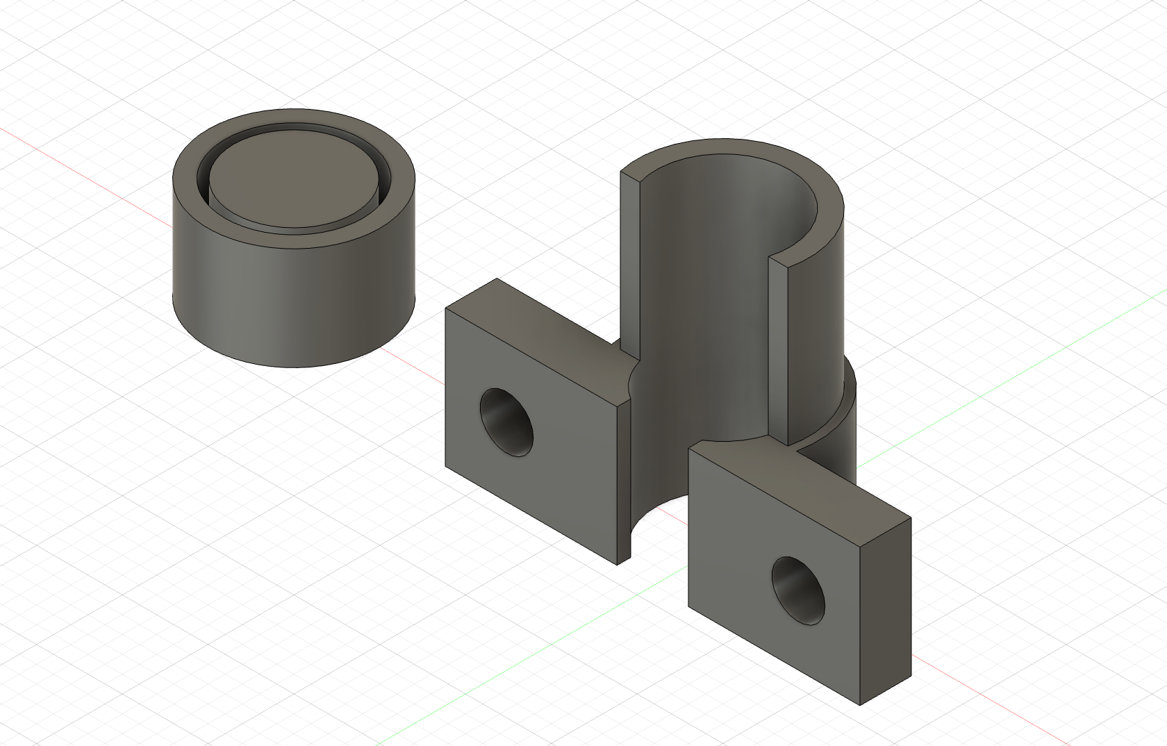 After that, Ian also designed brackets to mount the roller bearings that the platform of the gantry would sit on. We found a small brass pipe that fit perfectly as an axle for these rollers that we found in the lab and got to work. This was a much more straightforward process, especially because they could be printed much faster. We designed an end cap to clip on to the end of the pipe and hold the roller in place, and multiple iterations of the bracket gave us an omega-shaped, properly-dimensioned, clip that grabbed onto the pipe and screwed into the gantry, holding everything in place. We also added a little duck bill to the clip to pinch the part of the roller that is stationary to hold it in place so it wasn't wandering as the top platform rolled around.