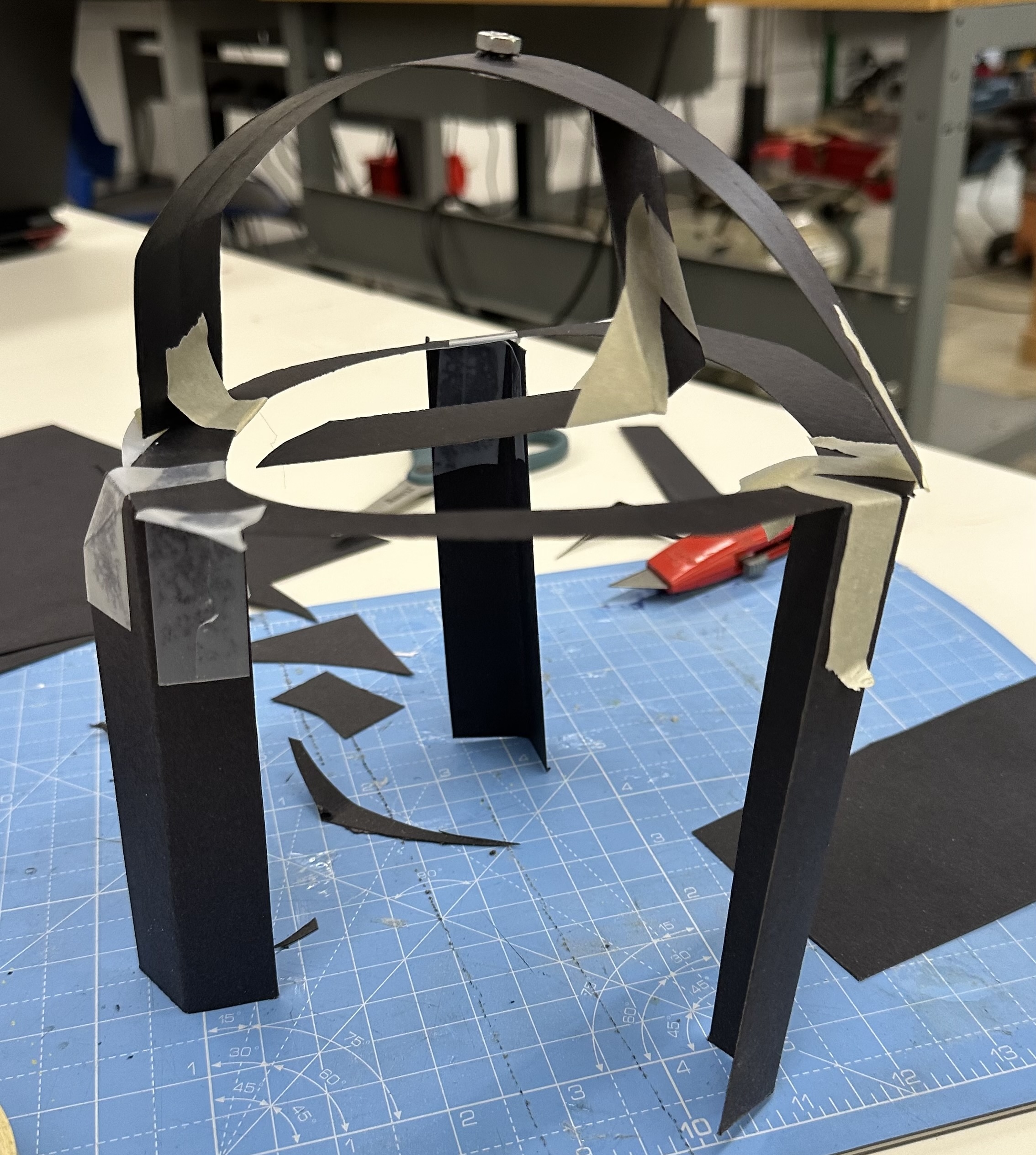 This seemed like a crazy difficult task to tackle at first - it needs to be circular, sit on top of a cake or coffee, but still hold the end effector close enough to the medium to have a crisp line, it needs to be able to rotate the end effector, and so many more little considerations. With this in mind, we realized that there were no gantries like this that existed in the lab, so we began prototyping the backbone of our machine.